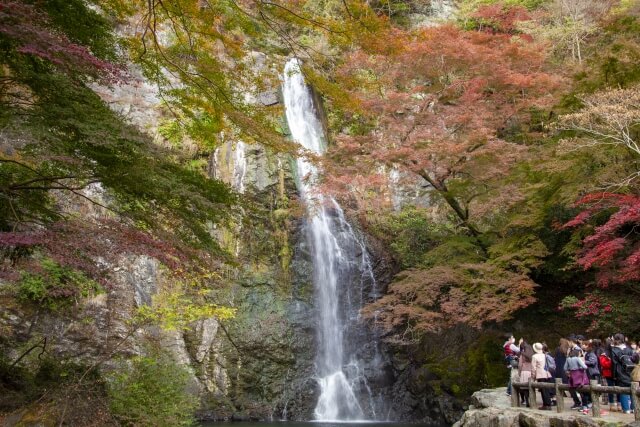 箕面大滝と紅葉の組み合わせは見事です。