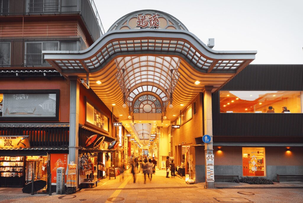 Dogo Haikara Dori Street (Dogo Shopping Street) is lined with numerous souvenir stores for tourists to enjoy.