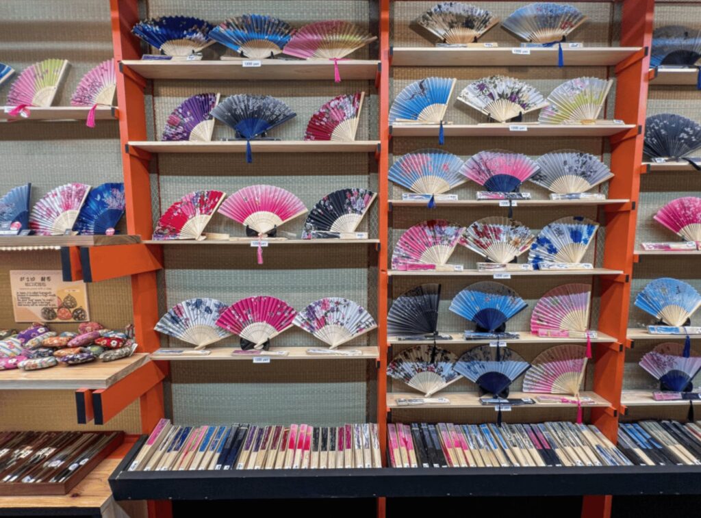 このお店はお箸や箸置き、扇子や和傘などの日本の伝統的な雑貨を販売しています。